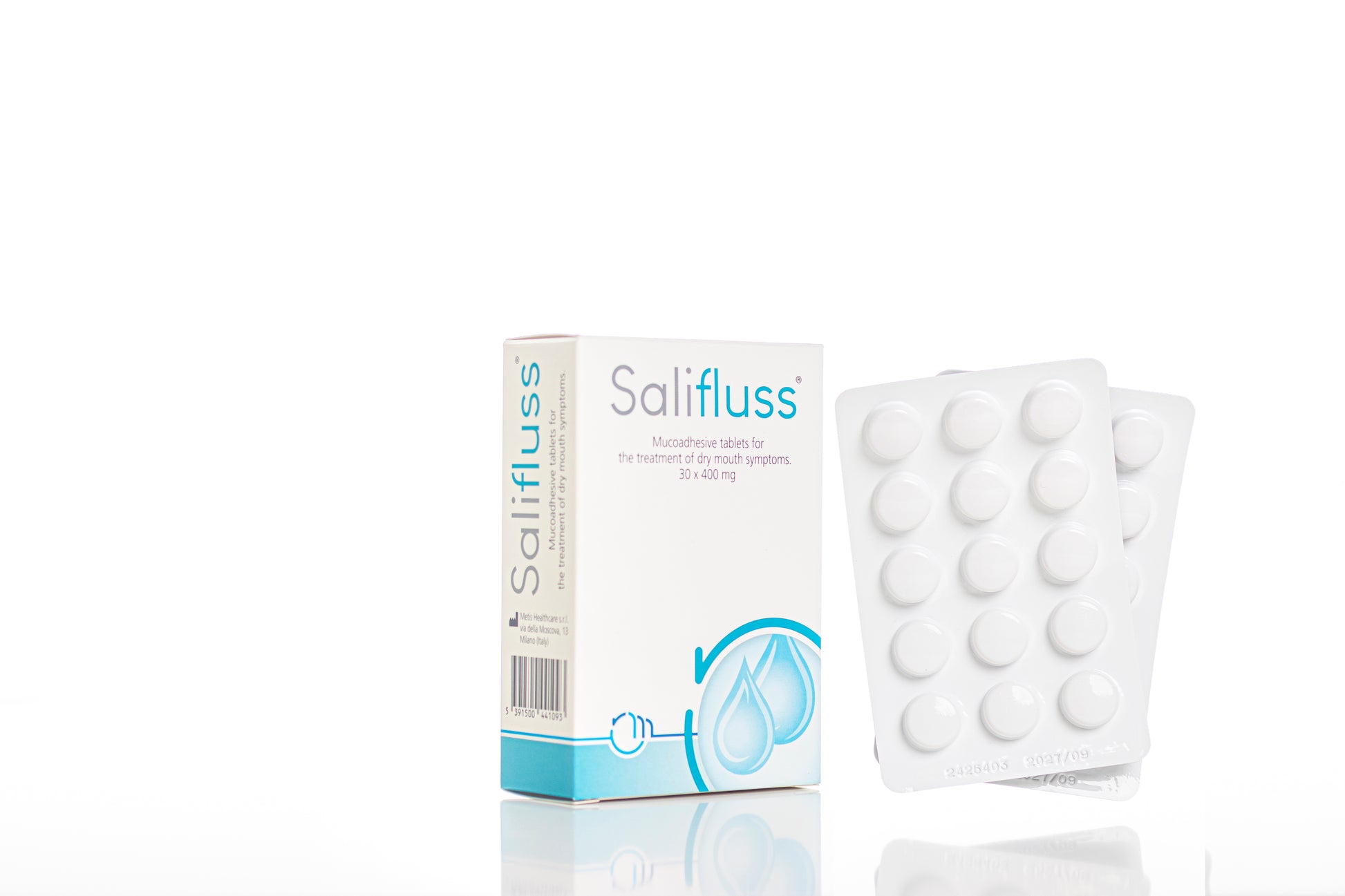 Muco-adhesive tablets for the treatment of dry mouth (xerostomia), acid saliva and related symptoms and complications.